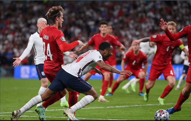 Tranh cãi trên mạng xã hội đã nảy ra khi nhiều người hâm mộ cho rằng trọng tài đã sai khi cho tuyển Anh được hưởng quả phạt đền ở hiệp phụ trong tình huống Sterling đã "ăn vạ" trong vòng cầm khi tác động của hậu vệ Joakim Maehle không đủ để anh "ngã đẹp" đến như vậy.