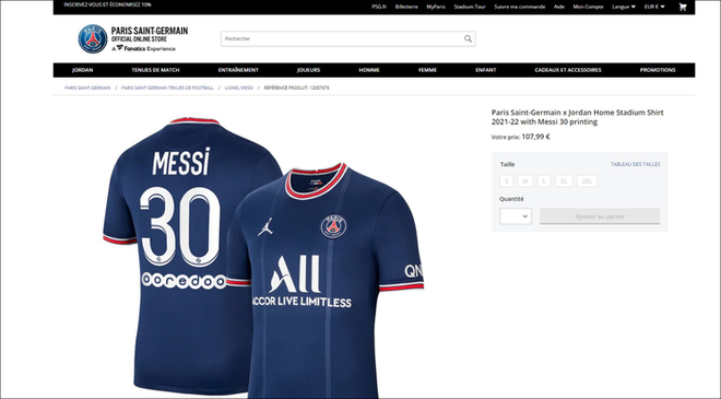 Áo đấu có số 30 của Messi ở PSG nhanh chóng cháy hàng trong vòng 30 phút mặc dù có giá không hề rẻ, dao động từ 98 USD cho đến 199 USD (tùy thuộc vào loại áo dành cho trẻ em và người lớn).