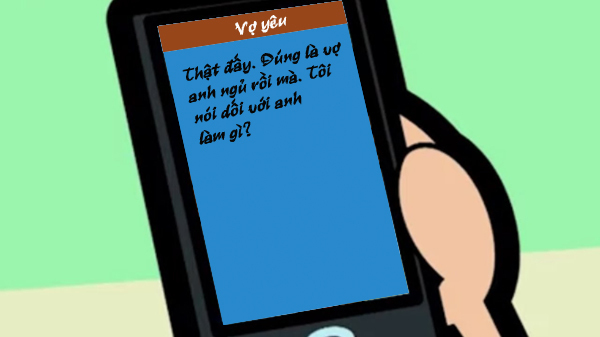 - Vợ hư quá, lại nói dối rồi. Đã ngủ rồi làm sao mà nhắn tin được?