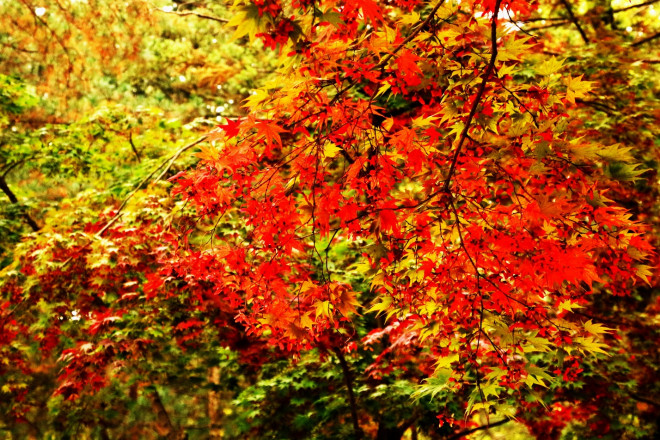 Và ở đó có cả một thảm có xanh rộng tới 20.000 m2, chạy dọc theo là con suối nhỏ. Nơi những chiếc lá phong rụng xuống, nơi chẳng vô tình khi chiếc ghế gỗ để giữa lá thu, cứ tung lá lên là chụp được vô vàn ảnh đẹp. Để rồi cứ đi theo chân những người xa lạ, mê đắm ngắm nhìn màu vàng lá ngân hạnh, màu đỏ lá phong. Có khi quay đầu nhìn lại, cả một rừng thu như hẹn gặp.