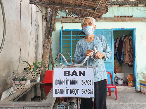 Từ Pleiku đến Phan Thiết thoắt cái đã gần 20 năm. Cụ làm đủ thứ nghề để sống: Hồi trước ở trọ dưới Cẩm Xìn (Đức Thắng) làm nghề vú nuôi. Hiền lành, chịu thương, chịu khó nên lúc đó công việc nhiều lắm, làm không xuể, nhưng vẫn cố gắng để kiếm sống. “Hồi đó làm việc, nhiều người thương, bà con quanh xóm trọ cũng hay giới thiệu để đi làm”- cụ nói. Bây giờ lớn tuổi, thỉnh thoảng đau nhức nên cụ Lễ dạt về đây tá túc trong căn phòng trọ nhà chị Hòa gói bánh ít đạp xe đi bán, sống qua ngày. Với chiếc xe đạp cũ, cụ Lễ đạp xe đi khắp nơi lên Phong Nẫm, hái lá, mót củi về nấu bánh. Chẳng ai ngờ, bây giờ cụ vẫn phải nấu bằng cái bếp củi nhỏ xíu, mỗi lần đốt khói mù mịt quanh quẩn bên hiên phòng trọ. Thui thủi trong căn phòng nhỏ hẹp với bộn bề là chiếc chiếu được trải ở góc phòng, chiếc xe đạp cũ, gắn tờ giấy: Bánh ít mặn: 5k/cái, bánh ít ngọt 5k/cái.