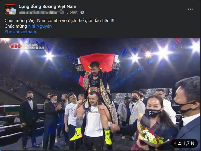 Tay đấm Nguyễn Thị Thu Nhi vừa giành được chức vô địch WBO hạng minimum thế giới. Hãy cùng xem phản ứng của cộng đồng mạng Việt Nam trước tin vui này.