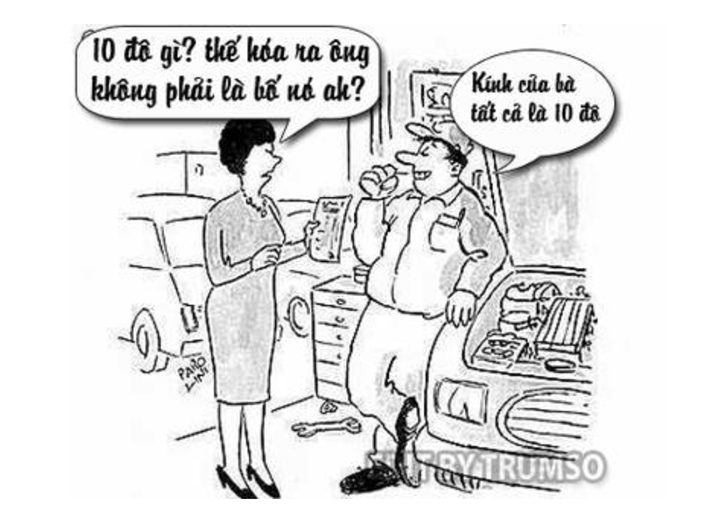 Một cậu bé chơi bóng, lỡ chân đá vỡ kính cửa sổ nhà nọ, bà chủ chạy ra giữ chặt quả bóng và quát.