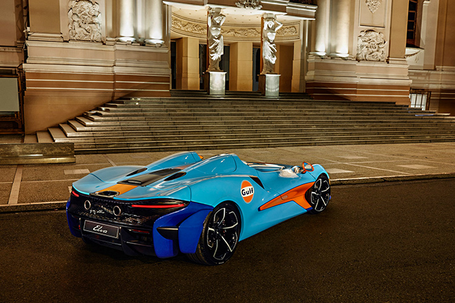 Chiếc McLaren Elva có mặt tại Việt Nam là xe mô hình, không có động cơ và hệ dẫn động. Nó sở hữu “bộ cánh” theo phong cách của thương hiệu dầu Gulf cổ điển với màu chủ đạo là xanh da trời và đường sọc cam chạy dọc theo xe. Màu sơn này được hãng gọi là MSO Gulf Theme, được sử dụng nhằm kỷ niệm sự hợp tác giữa thương hiệu này và McLaren