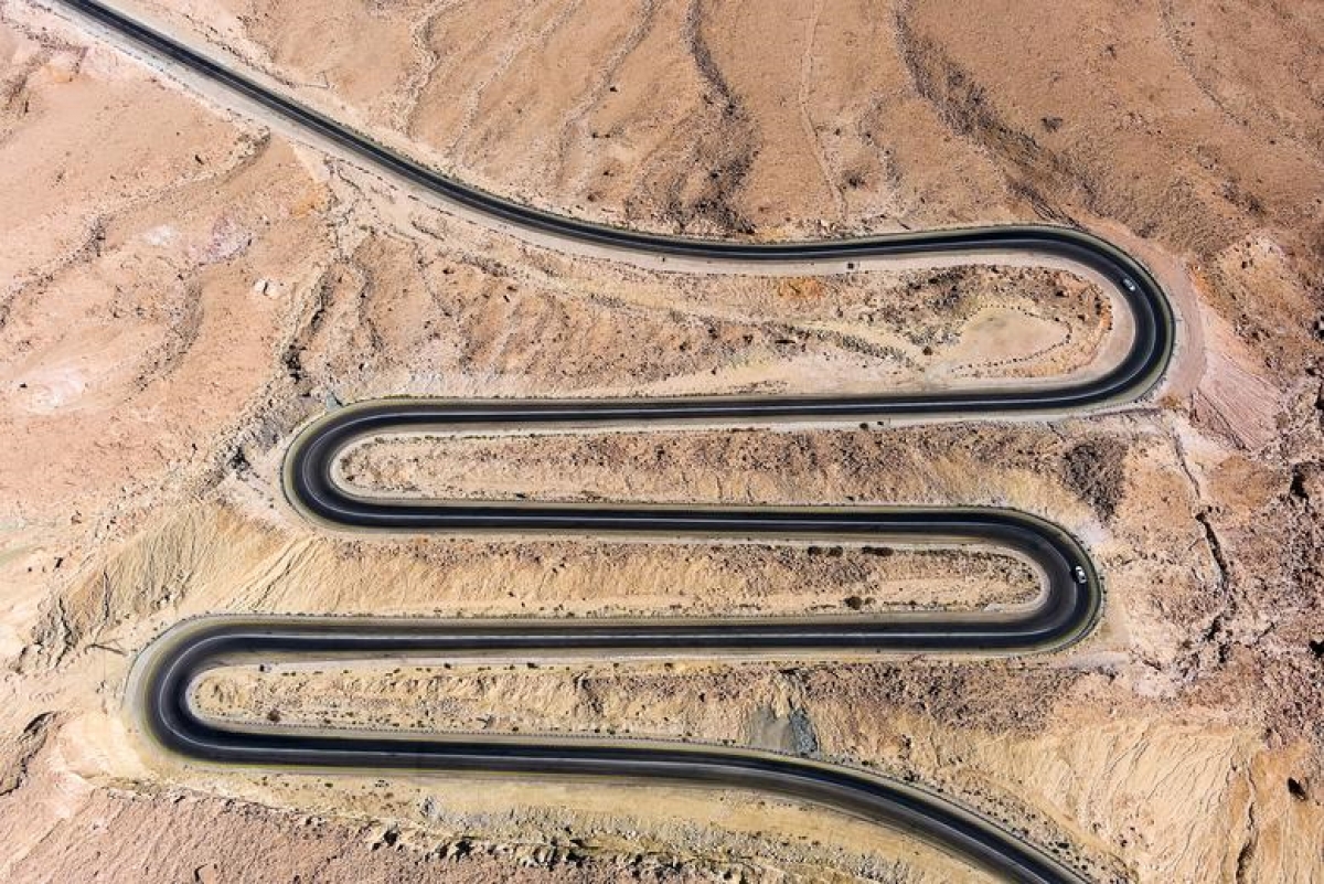 Con đường ngoằn nghoèo dẫn từ thị trấn Mitzpe Ramon tới miệng hố Ramon trên sa mạc Negev, Israel, ngày 22/10/2021.