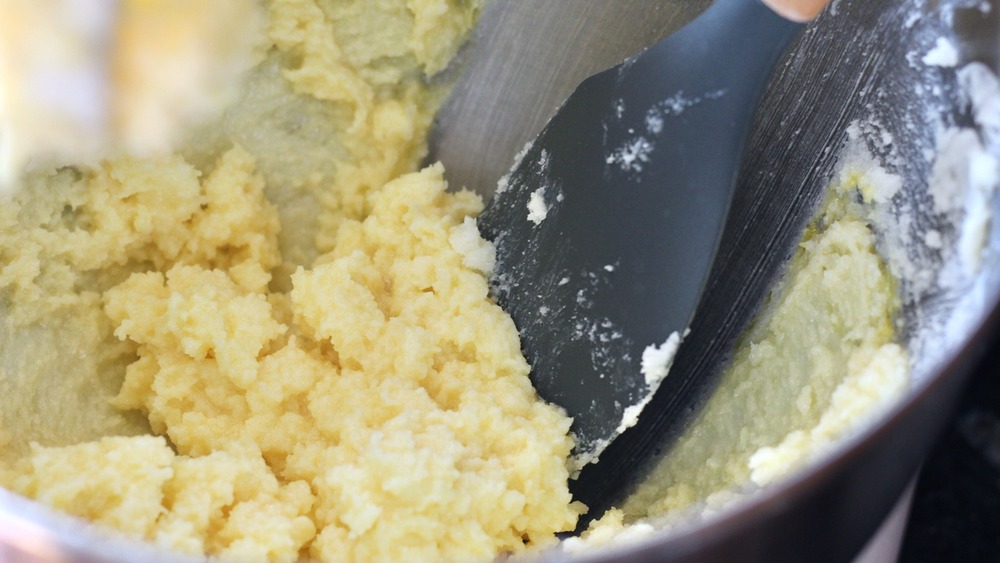 Bước 3: Trong một bát khác, đánh kem cùng bơ và đường cho đến khi bông và xốp nhẹ.