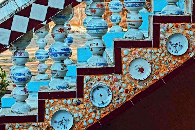 Lan can, cầu thang cũng được làm bằng các chén, đĩa vỡ đẹp mắt, độc đáo.