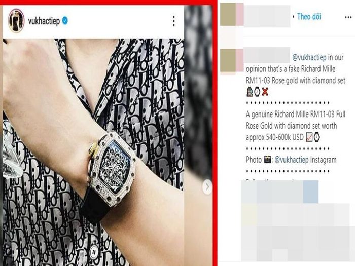 Theo tài khoản tố Khắc Tiệp, chiếc đồng hồ thật có giá lên đến 540.000- 600.000 USD (khoảng 12-13 tỷ đồng).