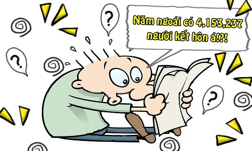 - Ừ, nhiều nhỉ. Tính ra mỗi ngày cũng hơn 11.300 người đám cưới đấy. Vậy mà tao với mày đến hơn 30 tuổi đầu rồi cũng chưa biết người yêu là ǵ!