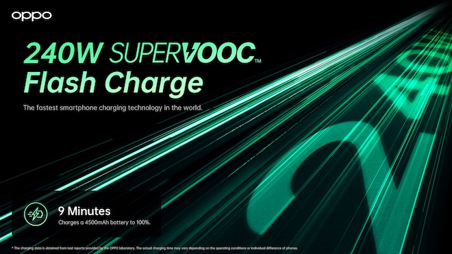 Riêng công nghệ Siêu sạc nhanh SuperVooc 240W đánh dấu bước đột phá công nghệ mới nhất trong ngành công nghiệp di động. Với khả năng sạc viên pin 4.500mAh từ 1% lên 100% trong khoảng vỏn vẹn 9 phút, SuperVooc 240W mở ra một kỷ nguyên sạc nhanh mới an toàn và hiệu quả, Oppo tuyên bố.