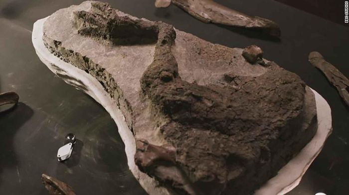 Chân khủng long hóa thạch được tìm thấy ở Tanis, Bắc Dakota (Mỹ). (Nguồn: CNN)
