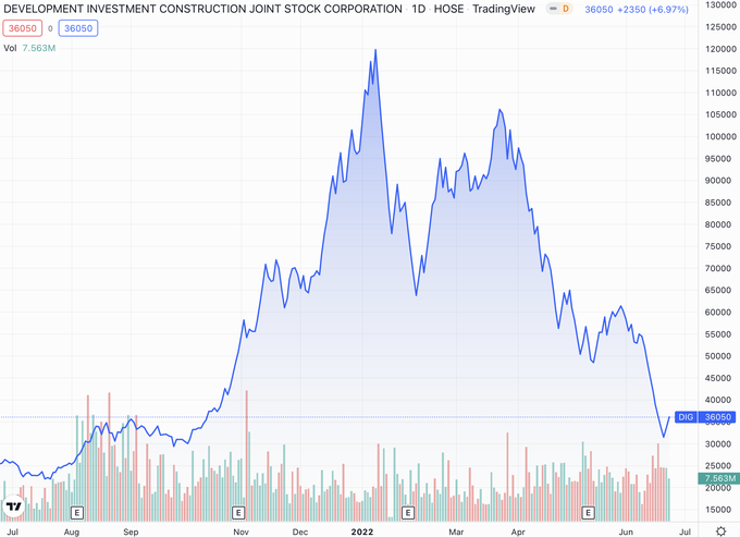 Từng là một trong những cổ phiếu làm dậy sóng thị trường vào cuối năm 2021, DIG đã mất gần 70% giá trị trong 3 tháng gần nhất.