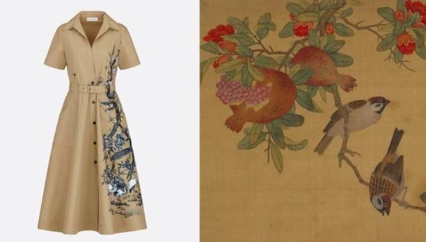 Dior lại dính cáo buộc liên quan đến văn hóa Trung Quốc khi những họa tiết trên váy giống những bức tranh chim và hoa truyền thống của Trung Quốc. Ảnh: Xiaohongshu