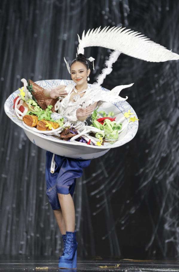 Khá nhiều mẫu thiết kế được lấy cảm hứng từ văn hóa ẩm thực như bánh xèo, phở, bún nước lèo, hủ tiếu, mắm… được cho "ăn theo" trang phục bánh mì do H’Hen Nie thể hiện thành công trước đó.