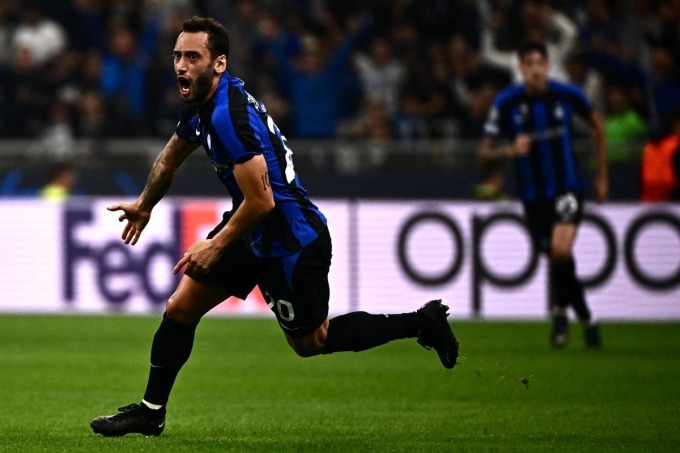Calhanoglu vui mừng sau khi mở tỷ số cho Inter. Ảnh: AFP.