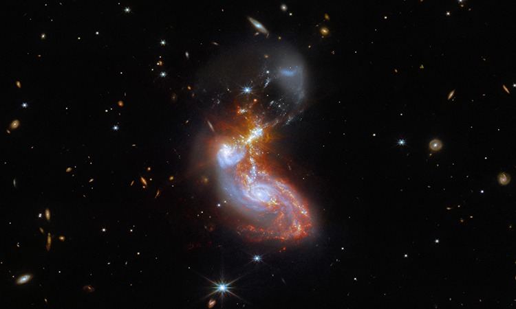 NASA hôm 1/12 công bố một bức ảnh chụp tuyệt đẹp về sự kiện va chạm thiên hà ZW II 96 ở cách xa khoảng 500 triệu năm ánh sáng.