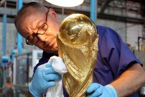 Đầu tiên, người thợ thủ công của công ty Bertoni cần có một khối đồng tốt. Đồng nóng chảy được đổ vào khuôn đúc có hình dáng và thiết kế giống hệt bản gốc của cúp World Cup.