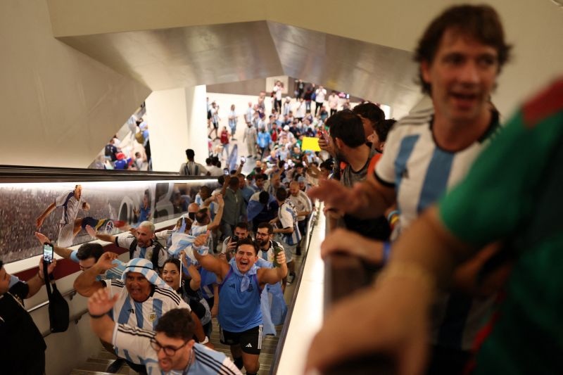 Dòng người hâm mộ ở ga tàu điện ngầm Doha trước trận đấu giữa Argentina và Mexico. Ảnh: Amanda Perobelli/Reuters.