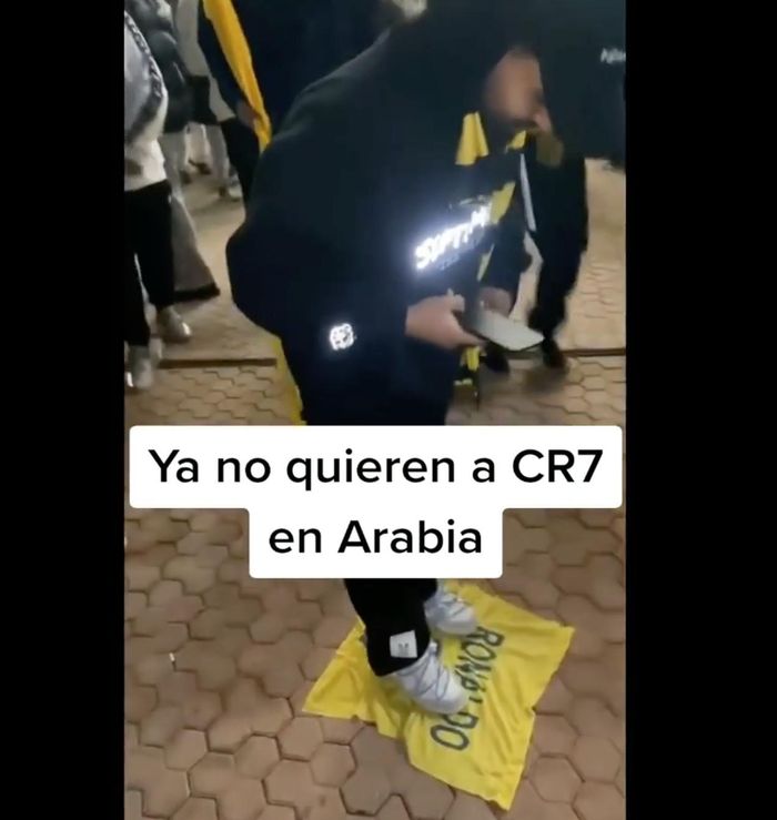 Một CĐV giẫm lên áo đấu của Ronaldo sau trận đấu giữa Al Nassr và Al Ittihad.