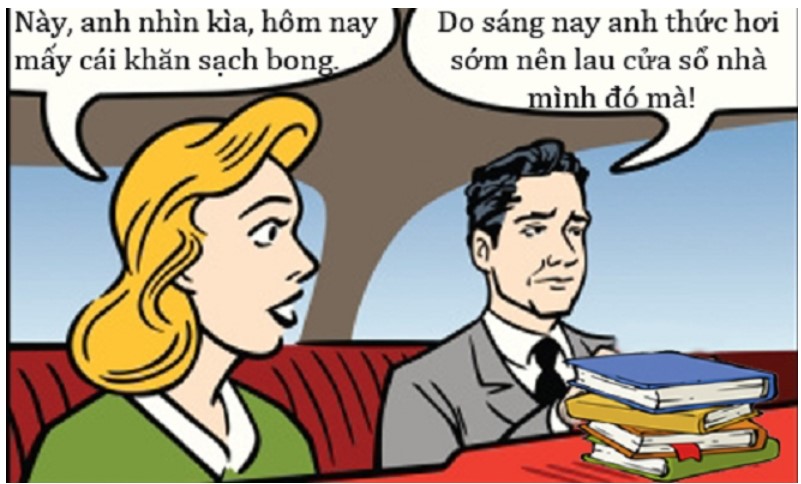 Người chồng chăm chú đọc báo, không quan tâm đến những lời vợ nói. Cô vợ cứ tiếp tục: