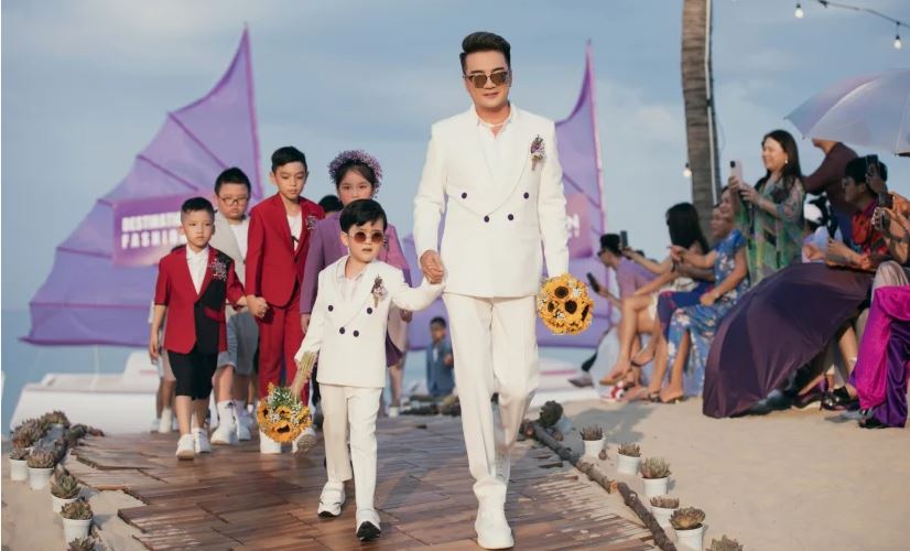 Ngày 3/6, bố con Đàm Vĩnh Hưng giữ vị trí vedette diễn bộ sưu tập Sunset của một thương hiệu thời trang trẻ em tại Destination Runway Fashion Week 2023 do siêu mẫu Xuân Lan tổ chức.
