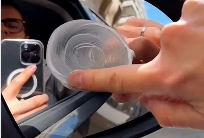 Theo đó người này đã dùng kem đánh răng chà vào vị trí trầy xước trên gương xe và lau sạch bằng một chiếc giẻ lau.