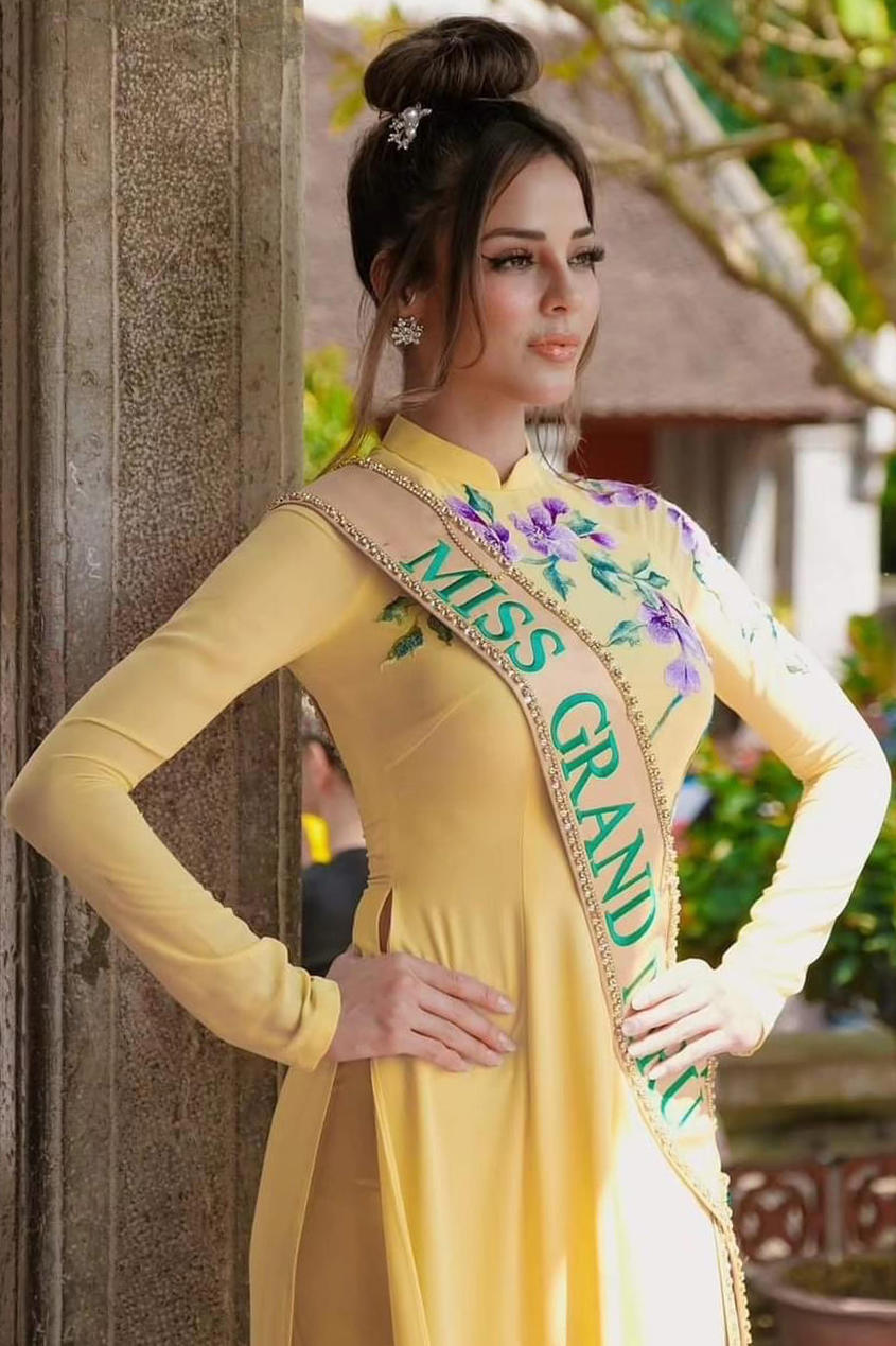 Miss Grand International 2023 mặc áo dài Việt Nam trong một hoạt động.