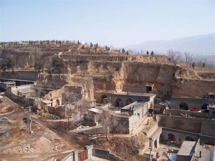 Những ngôi nhà xây trực tiếp trên vách đá hoàng thổ mềm, gọi là 'yaodong'.