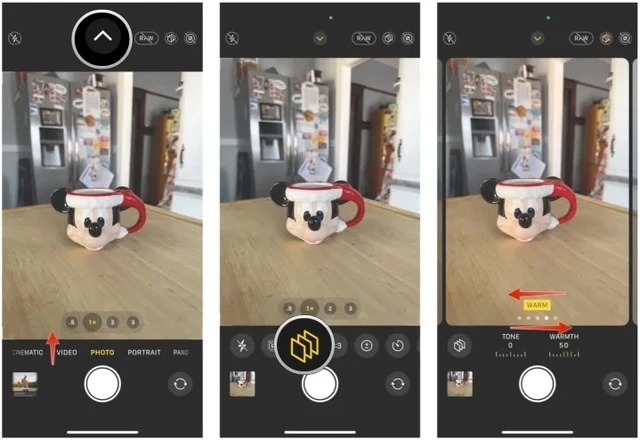 Dù thú vị nhưng tính năng này gần như sớm bị người dùng lãng quên. Để thực hiện, chỉ cần mở ứng dụng Máy ảnh, vuốt lên và nhấn vào ba khung xuất hiện ở cuối màn hình để chọn Photographic Styles.