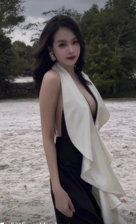 Trên trang cá nhân chính chủ, Nàng hậu Huỳnh Thị Thanh Thủy chia sẻ đoạn video ngắn ghi lại khoảnh khắc tận hưởng yên bình tại một khu nghỉ dưỡng. Bộ cánh cổ chữ V, xẻ sát rốn làm tôn làn da trắng và vóc dáng mảnh mai của người đẹp gen Z. Cô hoàn thiện vẻ quyến rũ với bông tai to bản cùng giày cao gót đồng điệu.