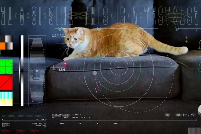 Chú mèo mướp có tên Taters "đóng vai chính" trong video đầu tiên được truyền bằng tia laser từ không gian sâu về trái đất của NASA.