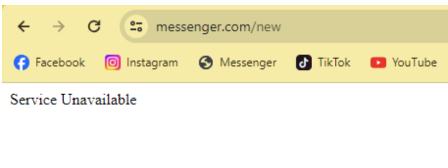 Cụ thể, một số trường hợp phản ánh khi truy cập website http://messenger.com/ dẫn đến trang chủ Messenger thì thấy load rất lâu, sau đó nhận được phản hồi "Service Unavailable" (Dịch vụ không khả dụng).
