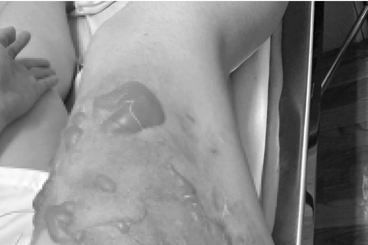 Tại khoa Bỏng và Tạo hình thẩm mỹ, Bệnh viện Trưng Vương (TPHCM), các bác sĩ chẩn đoán bệnh nhân bỏng nước sôi diện tích 8% độ 2-3 vùng lưng, bụng, cánh tay phải. Bệnh nhân được xử trí thay băng, đắp nhũ tương trị bỏng da, dùng kháng sinh, giảm đau và theo dõi tích cực.