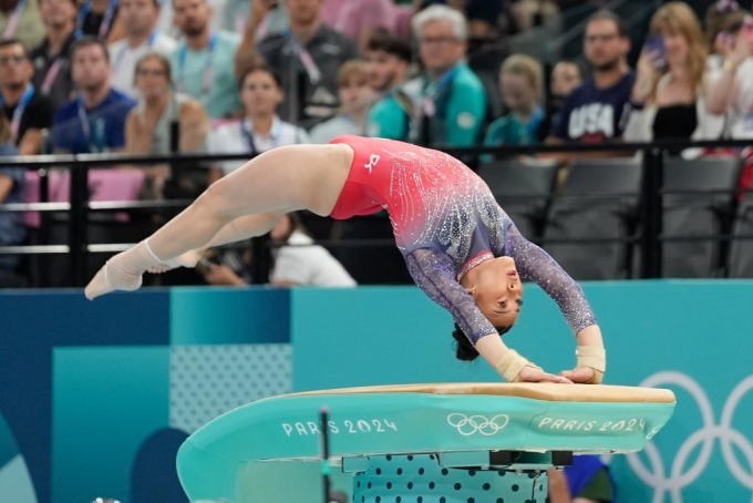 Suni Lee, Simone Biles mặc bodysuit đính hàng nghìn viên đá trong trận chung kết toàn năng nữ Olympic 2024.