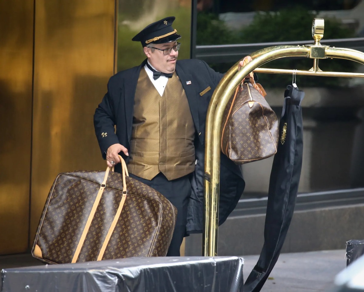 Cựu người mẫu 54 tuổi sử dụng ba kiện hành lư từ thương hiệu Louis Vuitton cao cấp gồm chiếc Sirius 55 Monogram Canvas trị giá 2.490 USD, Keepall 55 Monogram Canvas trị giá 2.210 USD và Cruiser Bag 45 có giá 3.050 USD.