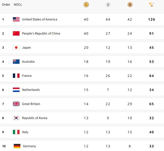 Ngược ḍng nghẹt thở như phim Hollywood, Mỹ chính thức vượt Trung Quốc để nhất toàn đoàn Olympic 2024