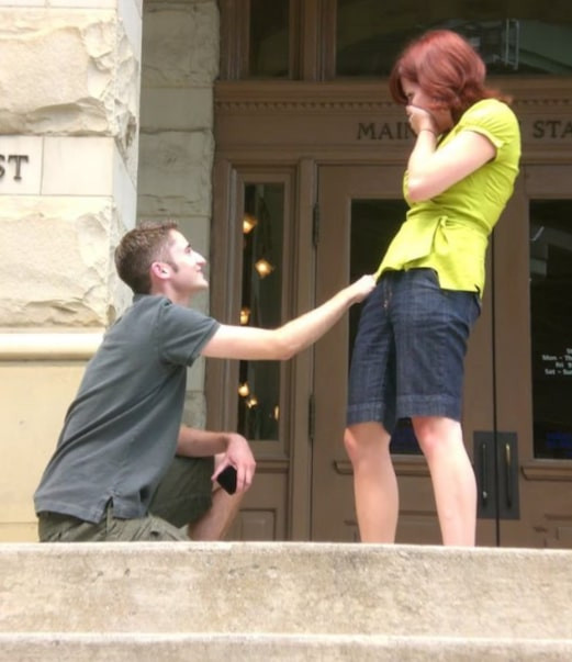 Justin cầu hôn vợ trên bậc thềm của nhà ga Main Street, nơi họ trú ẩn trong cơn bão năm 2004. Ảnh: WTVR