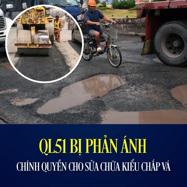 Ngày 8-10, cơ quan chức năng đă tạm đóng một làn đường quốc lộ 51 để thi công, sửa chữa đoạn xuống cấp trầm trọng, đầy 'ổ gà, ổ trâu' nguy hiểm. Đáng nói, đơn vị thi công đă bóc tách lớp nhựa ở một số vị trí và trải nhựa đường nóng lên, chứ không sửa chữa theo từng đoạn.