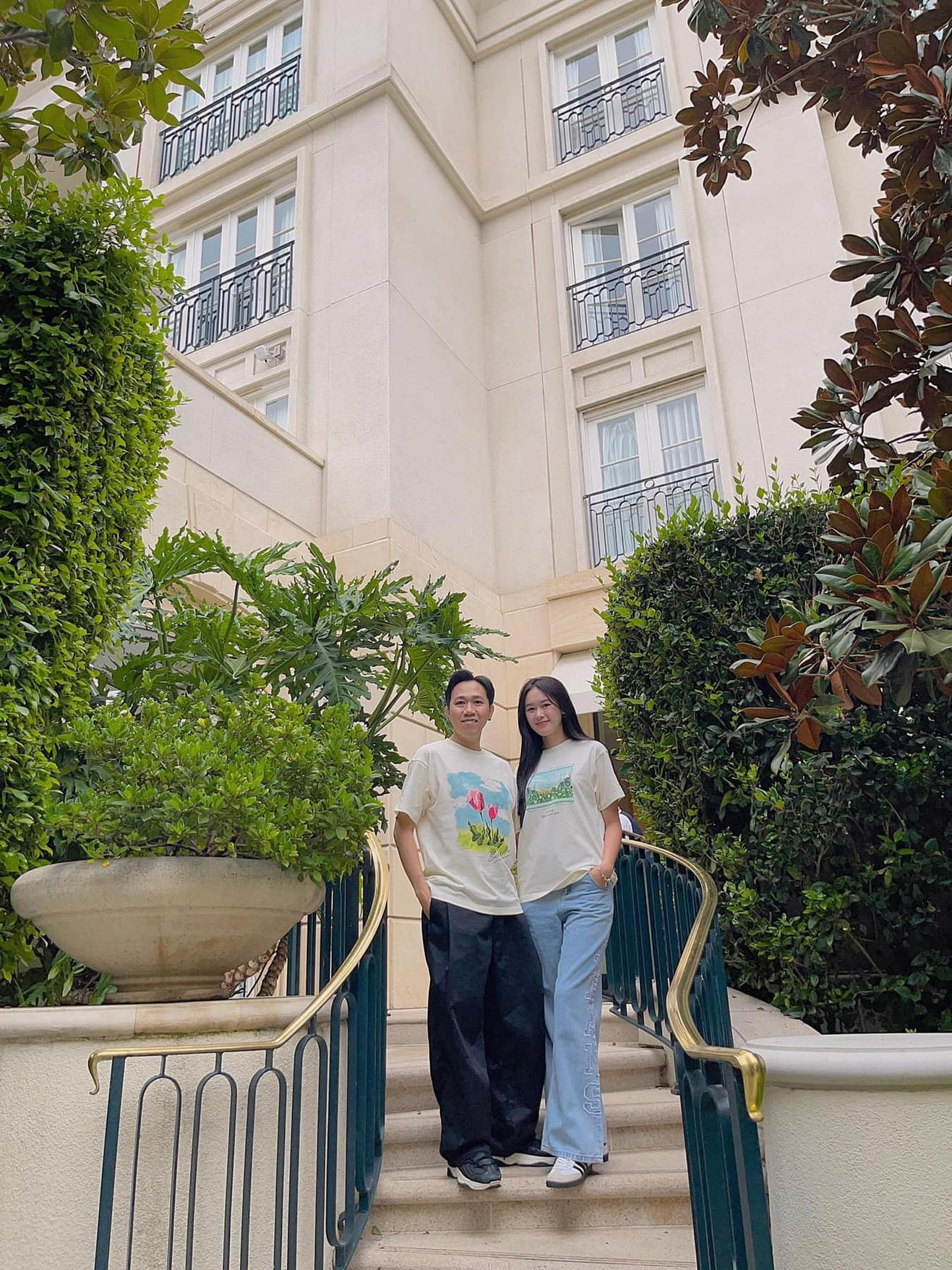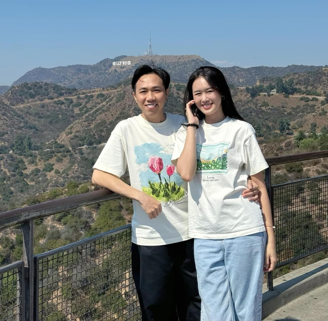 Nam diễn viên và vợ "xinh như hoa hậu" ăn mặc giản dị với áo thun và quần jeans. Cặp đôi thường xuyên cập nhật hình ảnh chuyến đi trên mạng xã hội.