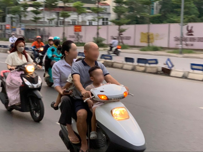 Đó có thể là những phụ huynh thờ ơ khi đèo con trẻ. Trên các tuyến đường đông đúc, tôi giật mình, thậm chí ngán ngẩm khi chứng kiến cảnh phụ huynh cùng lúc đèo bòng đến ba, bốn đứa trẻ trên xe máy. Không có mũ bảo hiểm, không đủ diện tích để ngồi, những đứa trẻ này được phụ huynh nhồi nhét vào các vị trí trên xe: đứa nhỏ nhất đứng ở phần để chân, và đứa lớn nhất sẽ ngồi sau cùng để đảm bảo không bị "rơi rớt quân số".