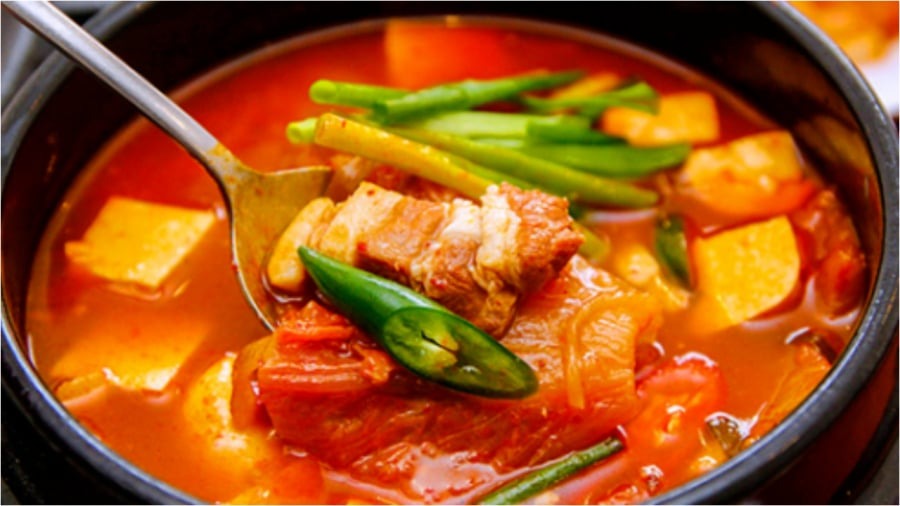 Món canh kim chi này có nước canh đậm đà, hương vị chua ngọt và đặc trưng từ kim chi, cùng với thịt ba chỉ mềm béo. Bạn có thể dùng canh này kèm với cơm, sợi mì, hoặc hủ tiếu tùy theo sở thích.