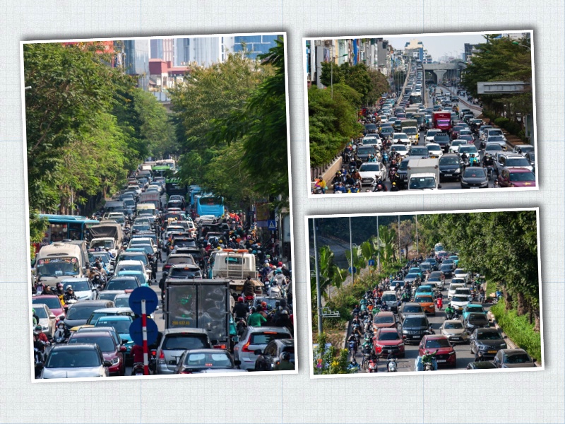 Bất kể vào khung giờ cao điểm hay không, nhiều tuyến đường tại Hà Nội đều đông đúc xe cộ, tình trạng ùn tắc thường xuyên xảy ra. Người dân phải chen chúc, chật vật di chuyển.