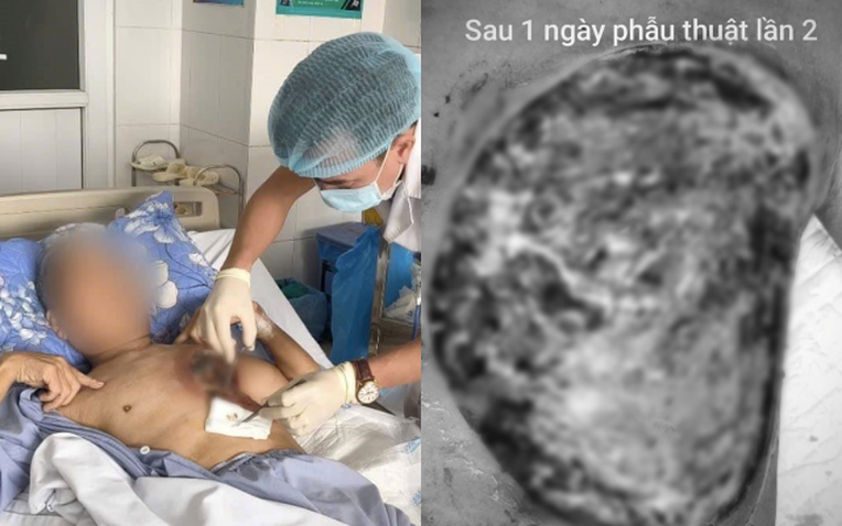 Để loại bỏ hết các vùng hoại tử và các vi khuẩn nấm sợi ăn sâu vào trong các mô cơ ở ngực, ngày 06/01/2025 ông T được tiến hành phẫu thuật lần 2. Sau phẫu thuật lần 2, sức khỏe ông T đã dần được ổn định, các mô hoại tử và vùng bị vi khuẩn nấm xâm nhập đã không còn. Dự kiến ông T sẽ được tiến hành vá da vùng ngực sau 7 ngày nữa.