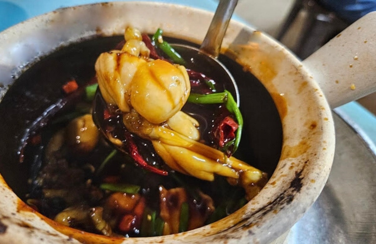 Hong Chang Frog Porridge and BBQ Fish: Ngoài Lau Pa Sat, đảo quốc sư tử còn nhiều điểm ăn đêm hấp dẫn khác như Hong Chang Frog Porridge and BBQ Fish (cháo ếch Hong Chang) tại 2 Geylang Lor 11. Quán mở cửa đến 2h sáng với thực đơn đa dạng, gồm cháo ếch niêu đất, cá đuối nướng BBQ trứ danh cùng các loại hải sản. Ảnh: Miss Tam Chiak
