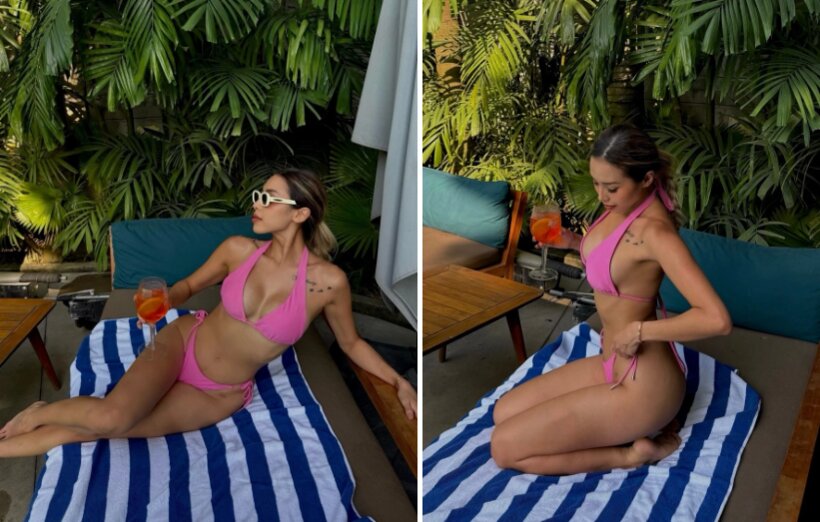 Hannah Nguyễn, thành viên của hội bạn hot girl Hạt Mít, Trâm Anh, Lilthu, chào hè trong bộ bikini hồng gợi cảm. Giống nhóm bạn thân, cô thường xuyên tập gym, pilates để giữ thân hình săn chắc, sẵn sàng khoe dáng khi hè tới. Ảnh: @hannah.phammm.
