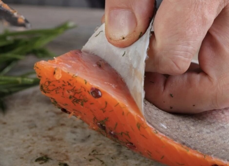 Nên ngâm da cá hồi trong nước muối loãng hoặc nước chanh để khử mùi tanh. Sau đó cạo sạch lớp màng nhầy để loại bỏ bớt tạp chất. Tiếp tục rửa lại với nước sạch trước khi chế biến.
