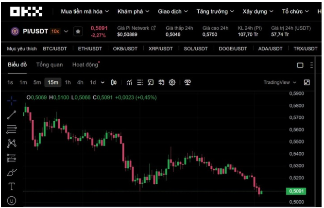 Sáng 5/4, trên sàn OKX, giá trị đồng tiền ảo Pi Network được giao dịch ở mức 0,5 USD/Pi, khiến những người đào Pi thất vọng, hoang mang.