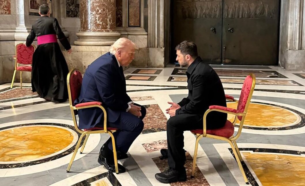 Theo hình ảnh do phía Ukraine công bố, cuộc gặp diễn ra ngay trong Vương cung Thánh đường Thánh Phêrô. Cả hai nhà lãnh đạo ngồi trên những chiếc ghế kim loại bọc nệm để có cuộc trao đổi sâu trước khi buổi lễ bắt đầu. Đây là lần đầu tiên họ gặp lại nhau kể từ cuộc đấu khẩu căng thẳng tại Phòng Bầu dục hồi cuối tháng 2.