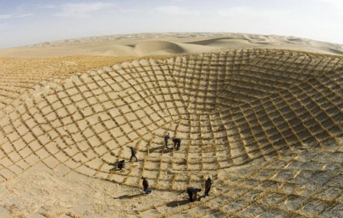 Được biết đến với cái tên “Biển tử thần”, sa mạc Taklimakan có được tên gọi này là do nó có thể "nuốt chửng" các thành phố và cơ sở hạ tầng thông qua những cơn bão cát. Tuy nhiên, sau 40 năm trồng trọt liên tục, cảnh quan đã trải qua một sự biến đổi ngoạn mục. Các vành đai rừng hiện neo giữ đất, bảo vệ các tuyến đường giao thông và góp phần làm mát khí hậu tại địa phương. Những nỗ lực này cũng đã tạo ra các cơ hội kinh tế mới cho cộng đồng địa phương, bao gồm việc làm trong việc bảo dưỡng cây, buôn bán thuốc thảo dược và nông nghiệp bền vững.
