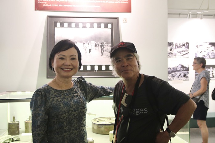 Nhiếp ảnh gia Nick Út và bà Phan Thị Kim Phúc hội ngộ tại Bảo tàng Chứng tích Chiến tranh (TP HCM) vào tháng 2/2024. (Ảnh: Kim Ngân)